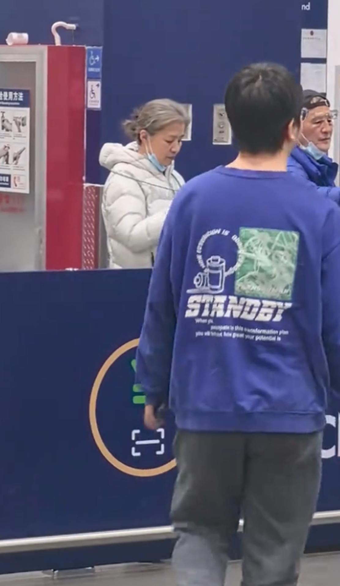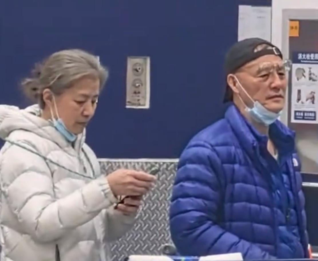 而从迟蓬夫妻俩身后背景来看,他们是来吃自助,不过,上了年纪的两个人似乎搞不懂身前的智能机器,研究了好半天。