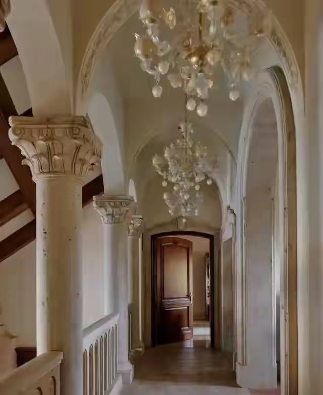 非常标准的欧式复古挑高,满墙都是高品质的油画,时不时还能看见几件古董藏品,就连庭院都是满满的欧式风格。