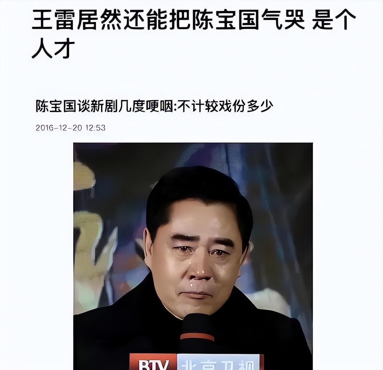 作为一步步稳扎稳打的老戏骨来说,这种现象是陈宝国最难忍受的。