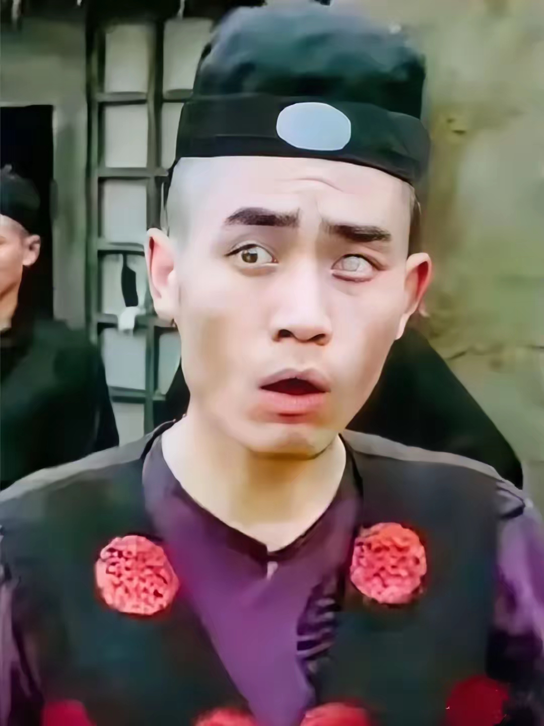 更让人佩服的是,因为角色瞎了一只眼,那时候没有美瞳和特效,陈宝国就用纽扣打薄放进眼睛里。