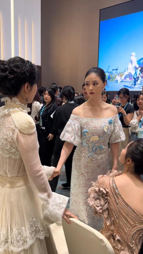 那条裙子是设计师特别定制的,真丝缎面搭配立体苏绣,当时她的妆发也格外讲究,唐代双环望仙髻搭配鎏金步摇,翡翠耳坠点缀其间,美得不可方物。