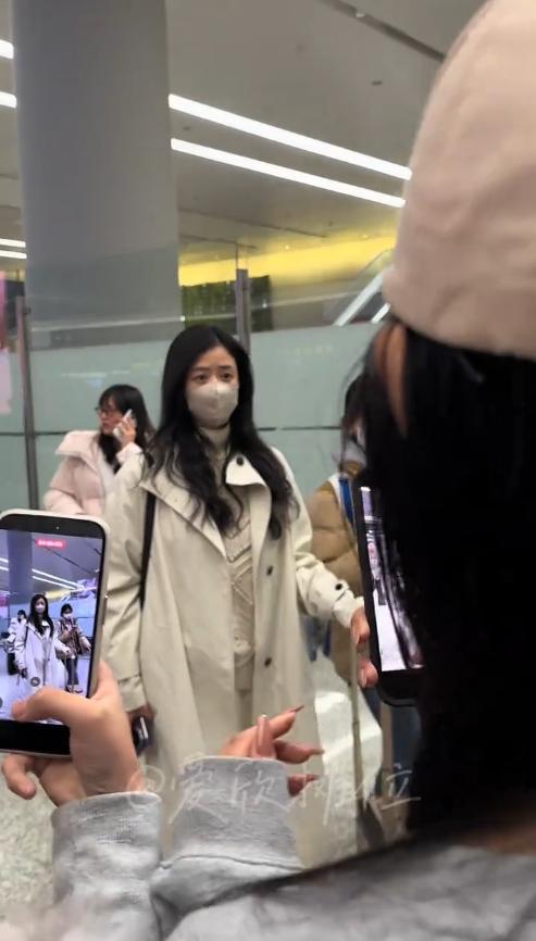 她双手插在风衣口袋里,低着头,尽量避开大家的镜头,脚步匆匆,似乎不想被过多打扰。