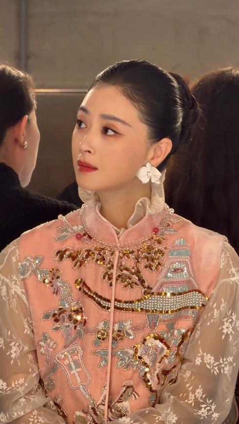 就在不久前的中国网络视听盛典上,她一袭茱萸粉非遗苏绣礼服再次刷屏,乌发低盘,只插一支粉珐琅嵌玉发簪。