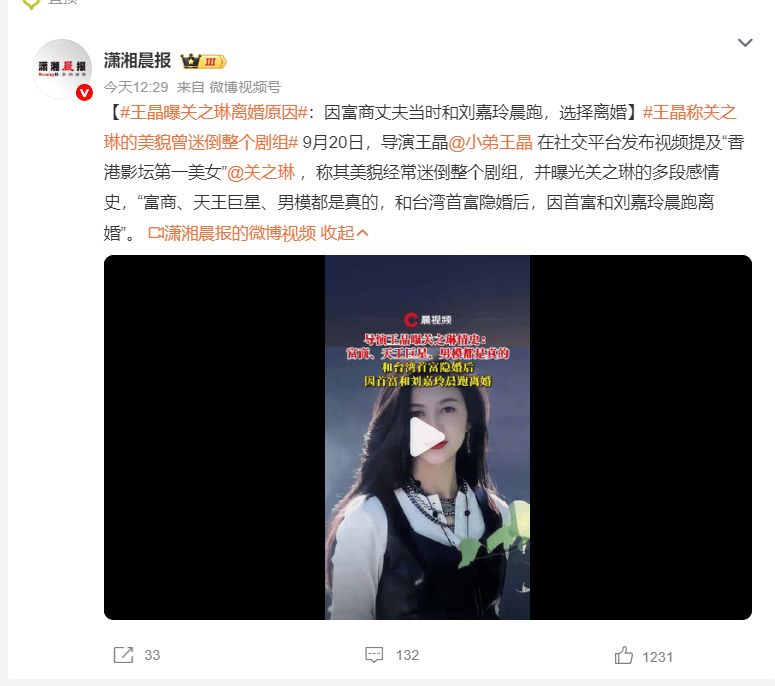 视频中,王晶还提及了关之琳丰富的感情经历,并证实外界关于她与“富商、天王巨星、男模”的恋情传闻均非空穴来风。他更爆料称,关之琳曾与一位台湾富商秘密结婚,但最终因该富商被拍到与刘嘉玲一同晨跑而导致婚姻破裂。