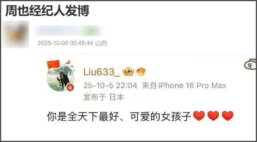 甚至有网友开始模仿李湘live图里的语气,说“我也不喜欢周也”,此前李湘误发live图,背景音有人说“我不喜欢周也”,引起网友热议,随后周也经纪人还疑似发文回应,称“你是全天下最好、可爱的女孩子”。