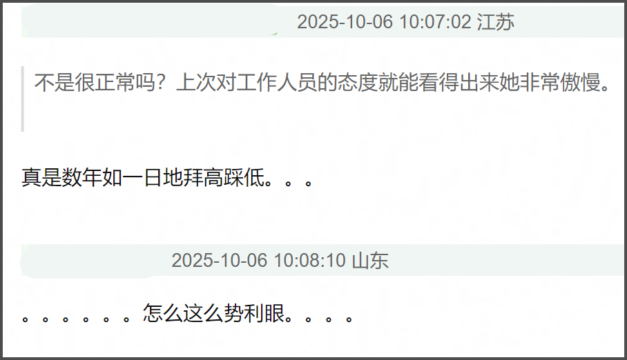 网友纷纷开启吐槽模式,嘲讽她还是当年那个在后台对央视记者黑脸的周也,这么多年过去了,不仅没有长进,现在都傲慢到对素人甩脸色,真是一如既往地高高在上。