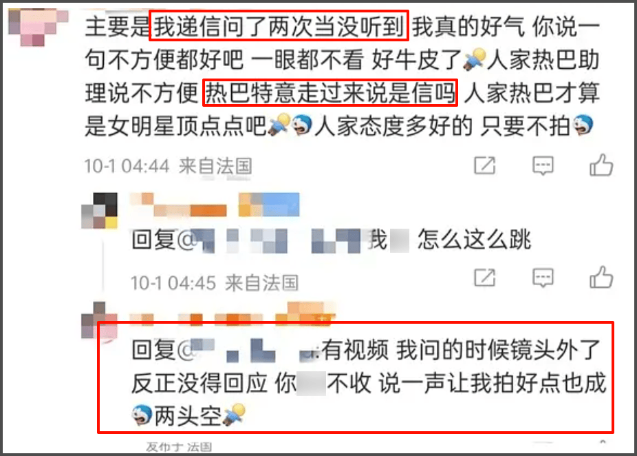 粉丝都无奈了,自己好不容易出国追星,没被回应也就算了,还因此耽误了拍照记录,去了法国一场结果两头空,还被偶像摆脸色无视,想想都很冤。