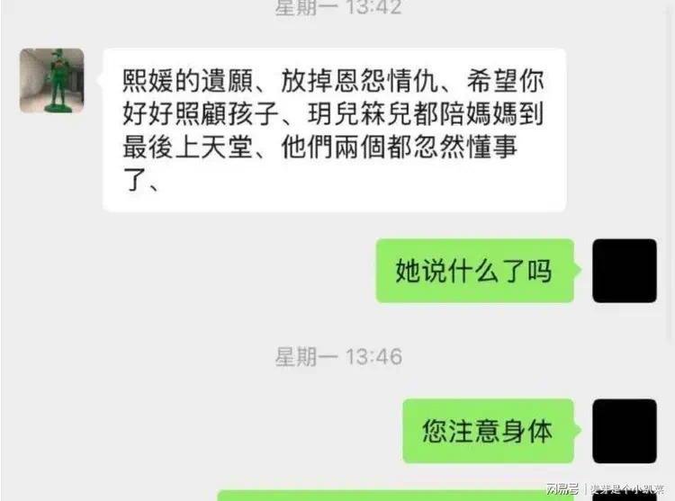 唯一的遗愿就是希望汪小菲可以好好照顾两个孩子,昔日的恩怨全部烟消云散,