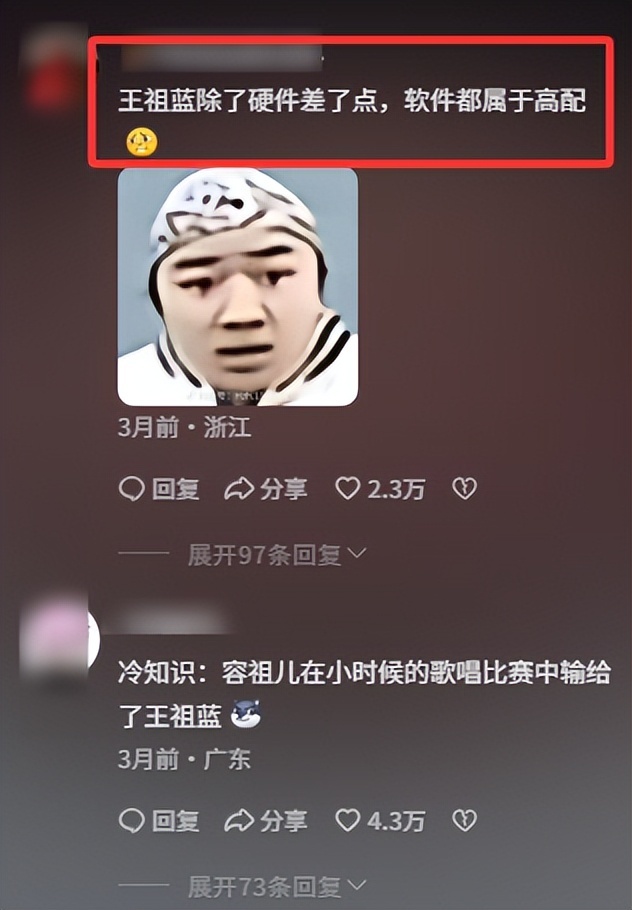更令人感到好笑的是,王祖蓝那时是香港儿童合唱团的团员,而容祖儿还落选了。
