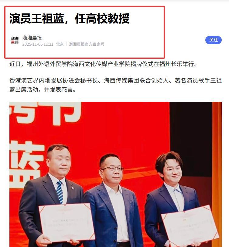 与王祖蓝同期且同一层次的明星中,并没有几个成为大学教授的。