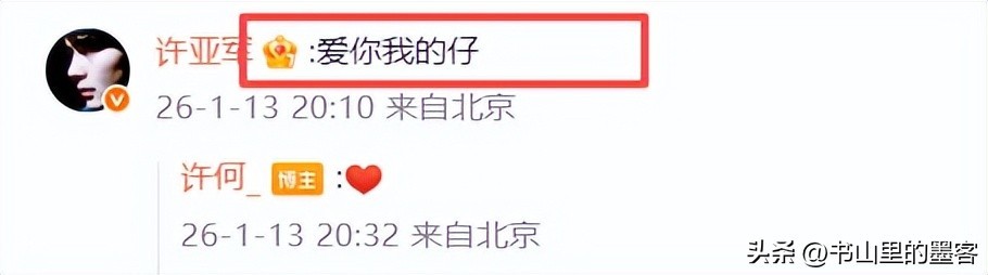 而许何前脚刚发完长文,许亚军就直接来了五个字回应,称“爱你我的仔”,想必看到如此懂事的许何,许亚军心里面也是很温暖了。
