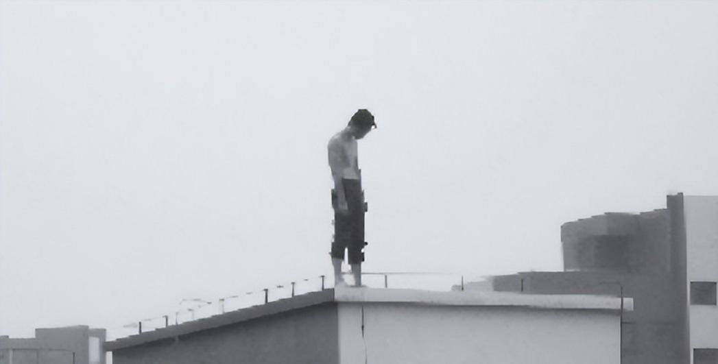 他在楼顶徘徊了三个小时,时而望向远方,时而看看手机,时而沉默伫立。